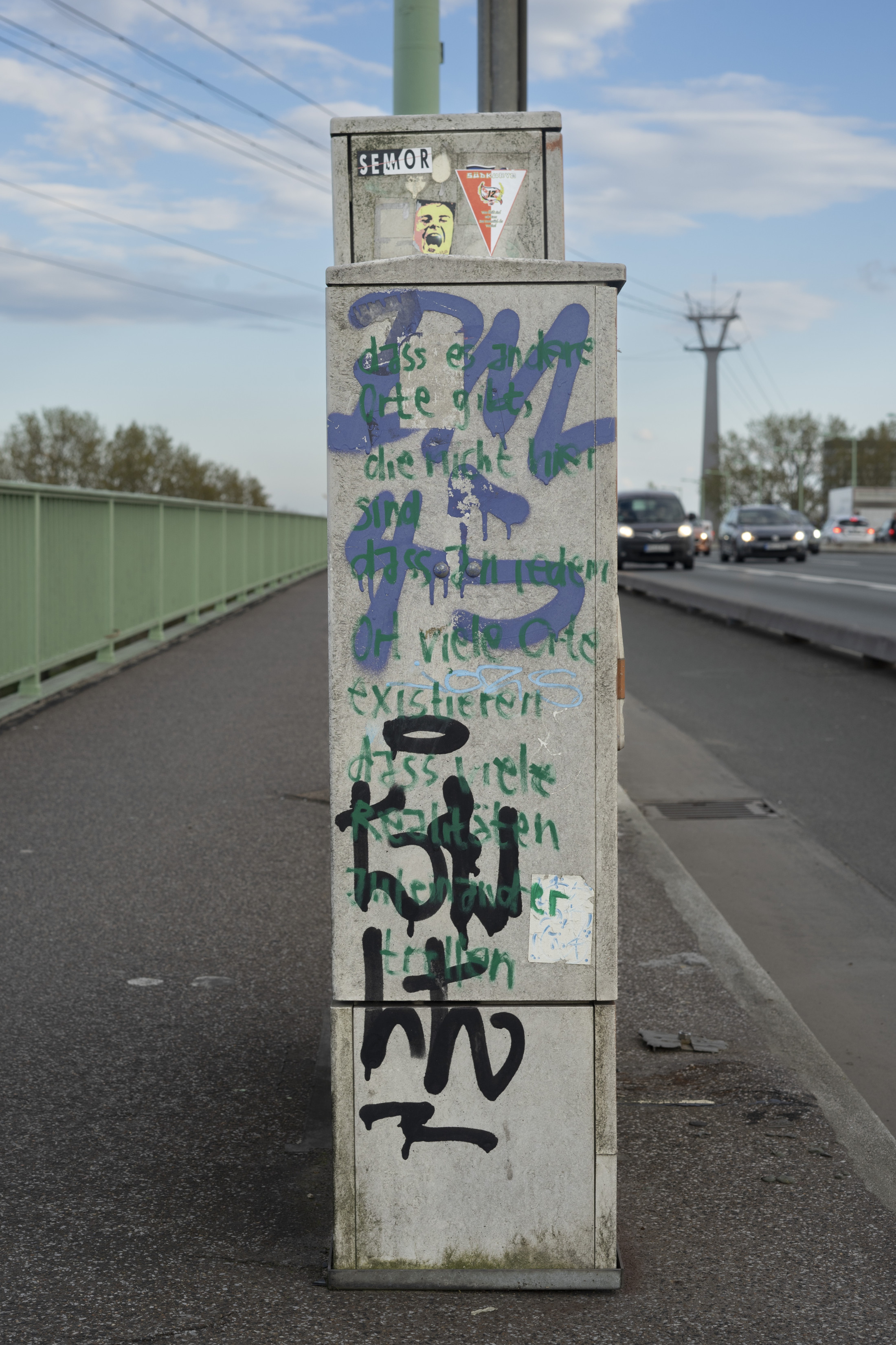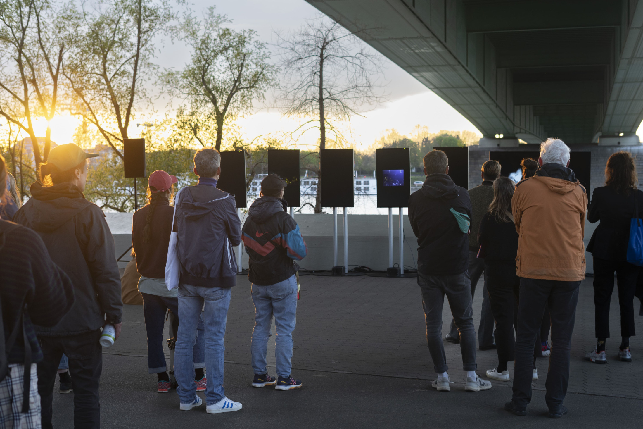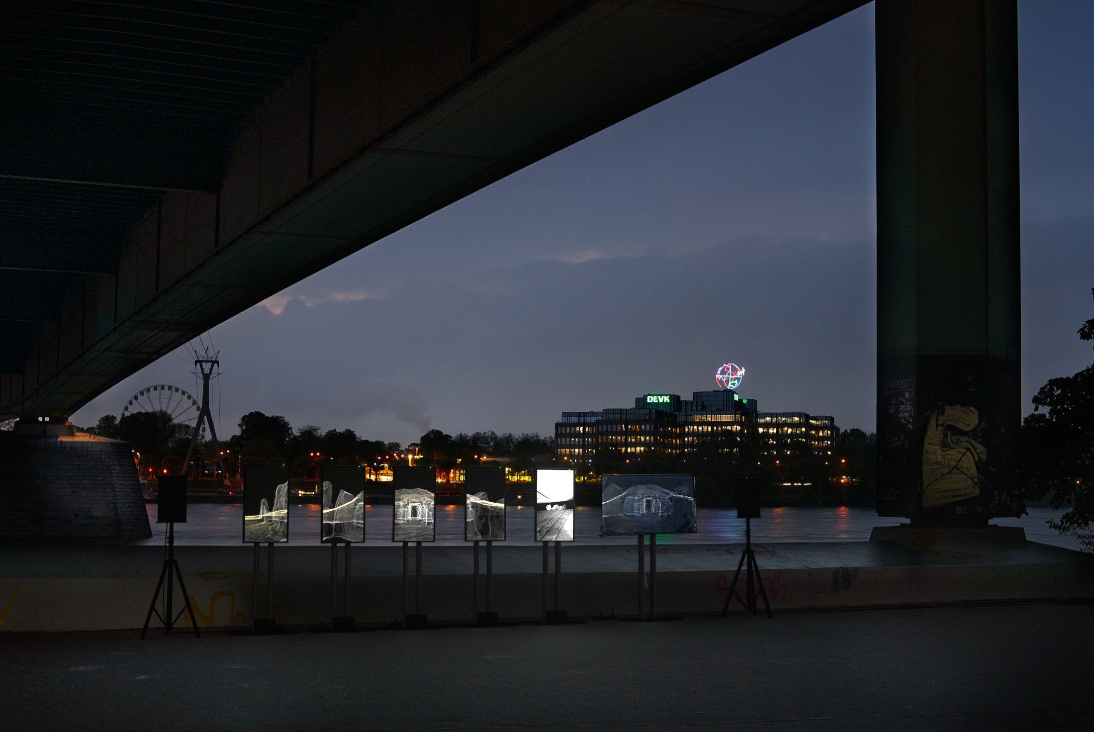 Cologne’s bridges are (historical) symbols of its urban transformation and provide space for discussion in relation to the expansion and preservation of their existence as structure-giving elements of the city. They connect districts that are undergoing different processes of social development, bridge the legendary Rhine, and connect the inner-city west with the east of Cologne at seven points. The bridges also embody the (geographical) junctions between the art scene on the left and right banks of the Rhine, which the project traced and illuminated through collaborations with existing Cologne initiatives and institutions in the different neighborhoods near the bridges.