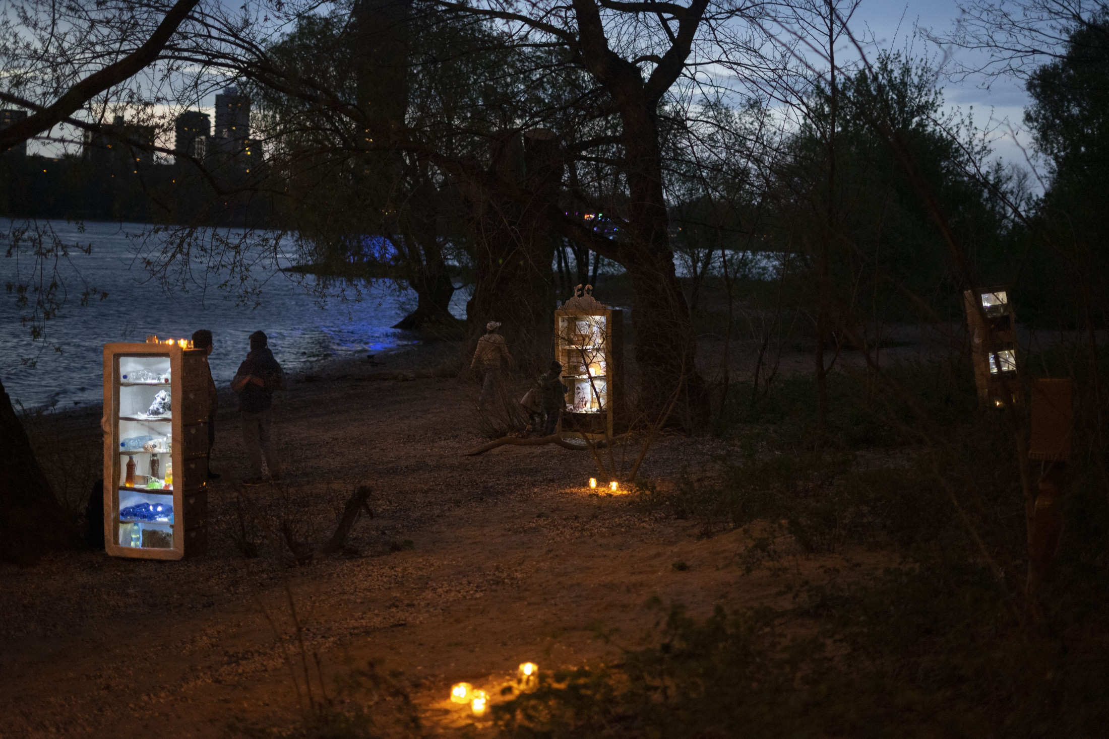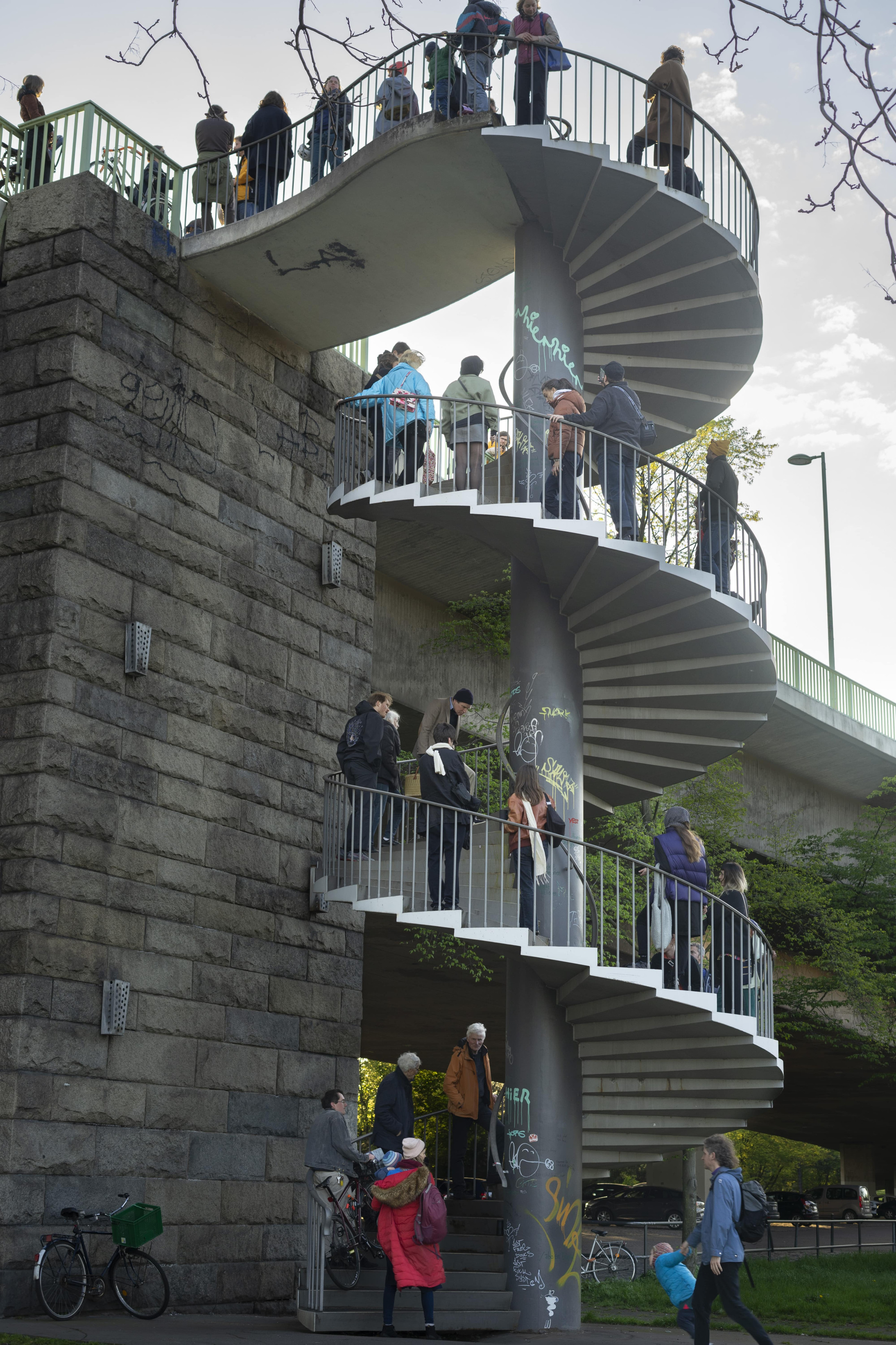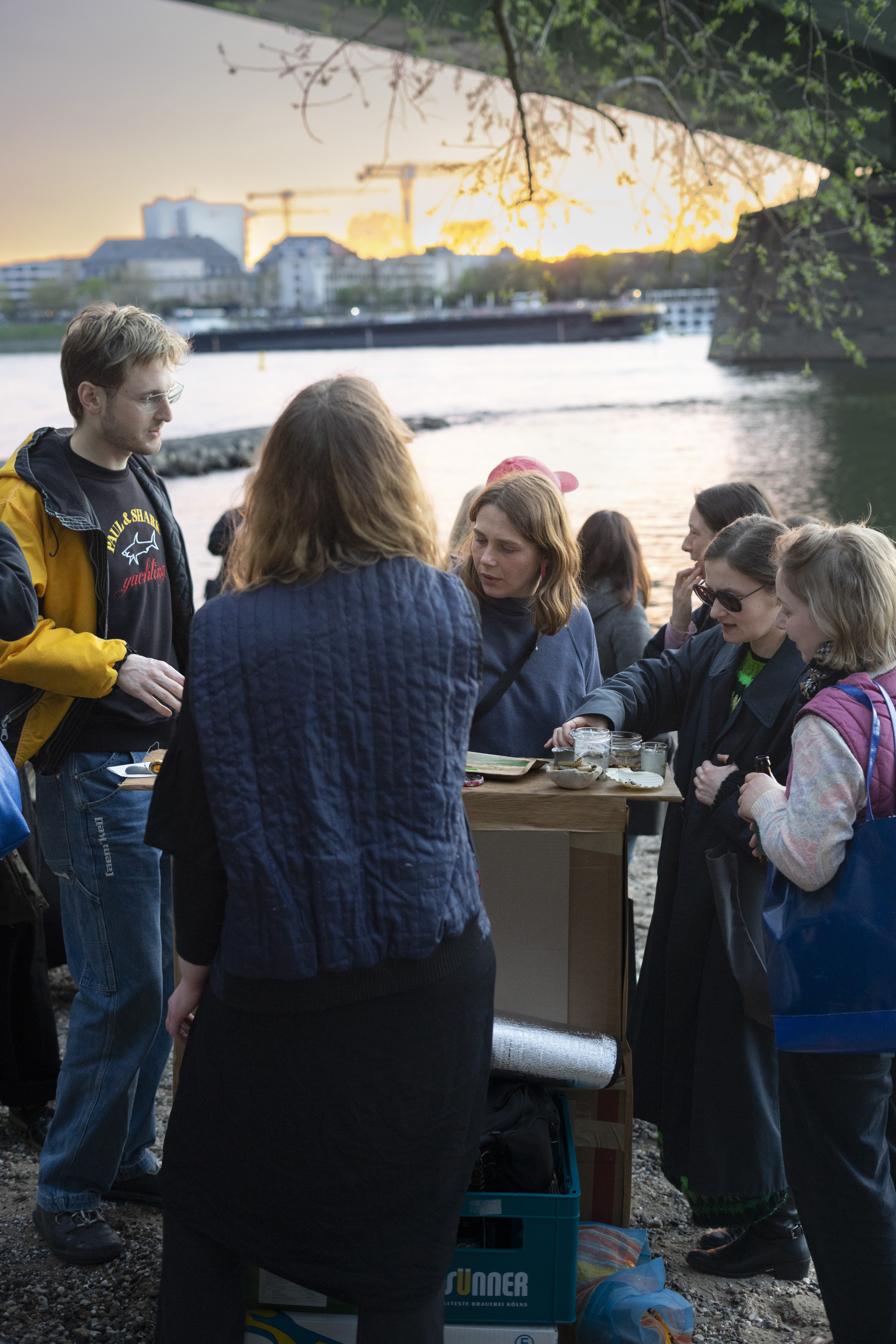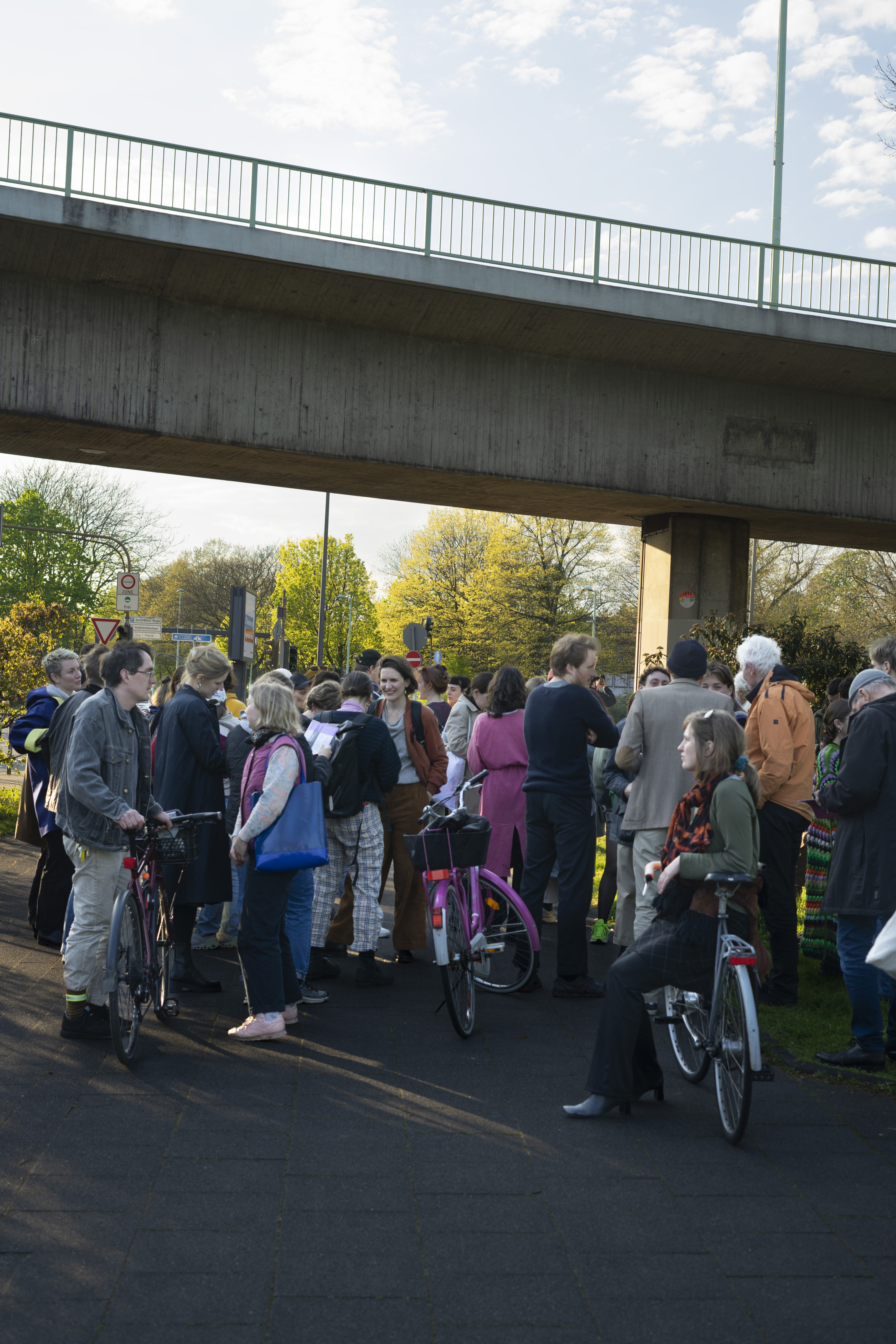 Within the framework of Über Brücken – Bridging, seven days of events featured local and international artistic positions. The invited artists engaged with the respective places, districts, and their inhabitants, as well as with the histories of the individual bridges. Each event day is devoted to one of the seven bridges. The events took take place over three years, starting in September 2022 with the Mülheimer Brücke. Over the following months, the venues moved from north to south across the Zoobrücke, the Hohenzollernbrücke, the Deutzer Brücke, the Severinsbrücke, the Südbrücke, and the Rodenkirchener Brücke, each including a guided walk across one of the bridges from bank to bank, from east to west and back again.