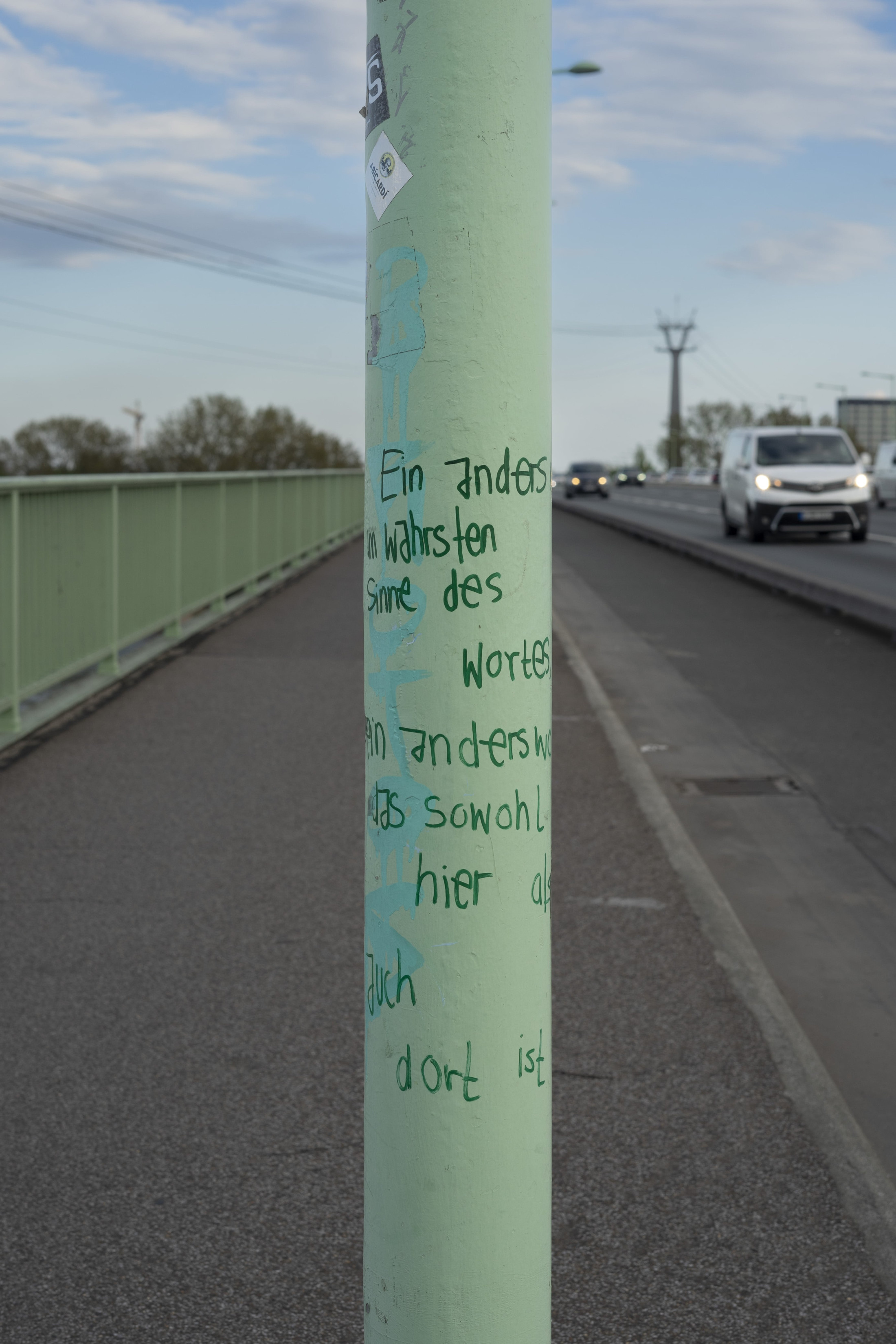 Über Brücken – Bridging was a performance and exhibition project in public space around and on the bridges of Cologne. Between September 2022 and September 2024, the program took place in various public places in Cologne that were connected to the bridges and formed the setting for the artistic works.