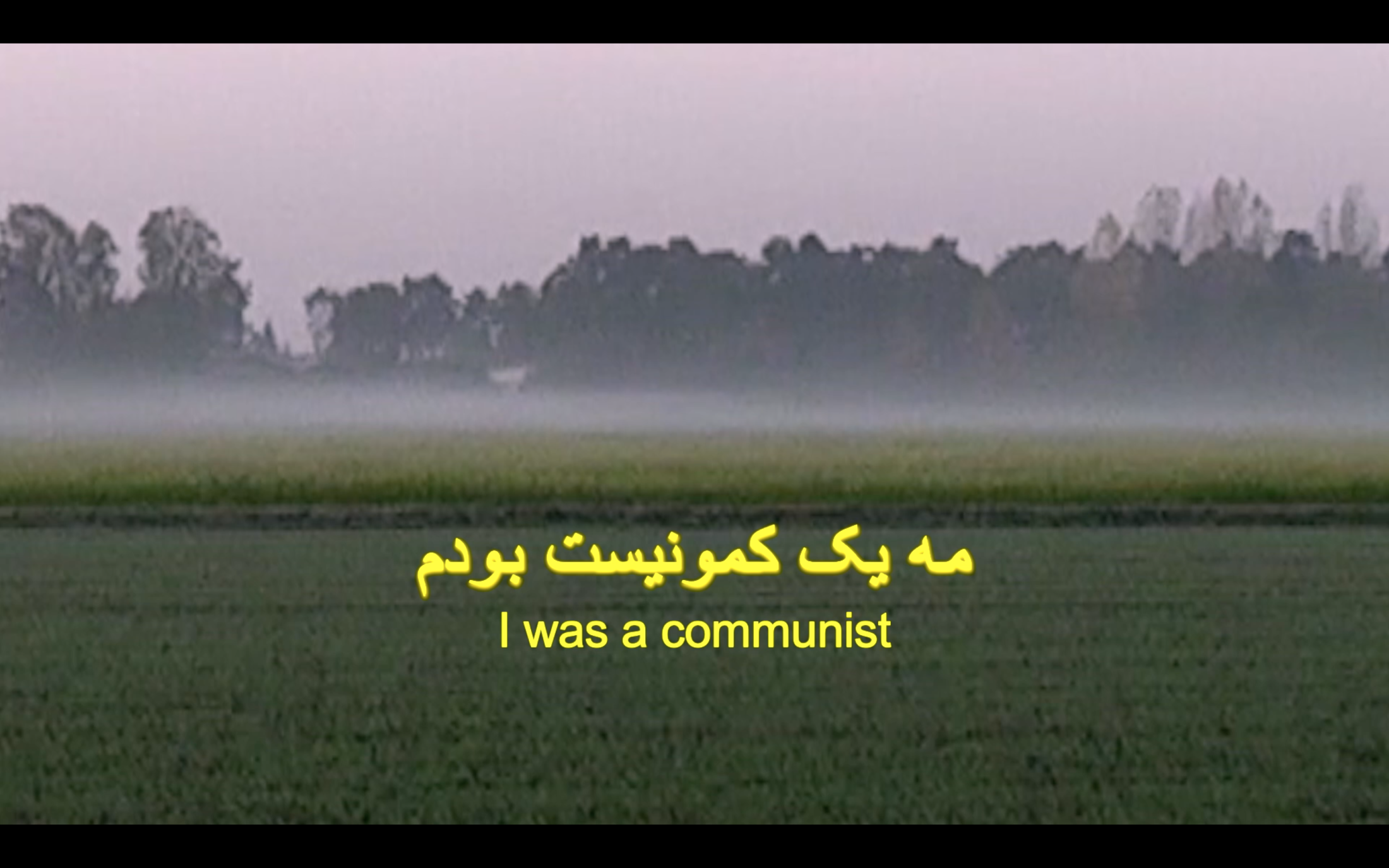 Eine der Stimmen aus den Monologen spricht in dem Film Hollage der Ort an dem wir jetzt leben (2021). Sie gehört einer Frau mit marxistischem Hintergrund, die Ende der 90er Jahre mit ihrer Familie nach Deutschland geflohen ist. In ein ländliches Gebiet versetzt, zeigt einer/m die unbewegte Kamera eine (fast kitschige, an die cineastische Sentimentalität des persischen Kinos anmutende) Landschaftsaufnahme nach der anderen. Hollage, ein Ort, der einem sofort wieder aus dem Kopf verschwindet durch den Überfluss an poetischen Naturbildern und funkelndem Lichtspiel. Ästhetisch erinnern die Bilder an alte Handyfotos und gleichzeitig herrscht die gleiche Distanz zwischen Betrachter*in und der unnachgiebigen, europäischen Natur wie in den Malereien des Caspar David Friedrich. Man findet jedoch keinen einzigen Menschen, kein Wanderer über dem Nebelmeer reckt sich empor. Es entsteht der Eindruck, man befinde sich in einem Nicht-Raum, vielleicht einer schimmernden Fantasie oder einem besseren „danach“.