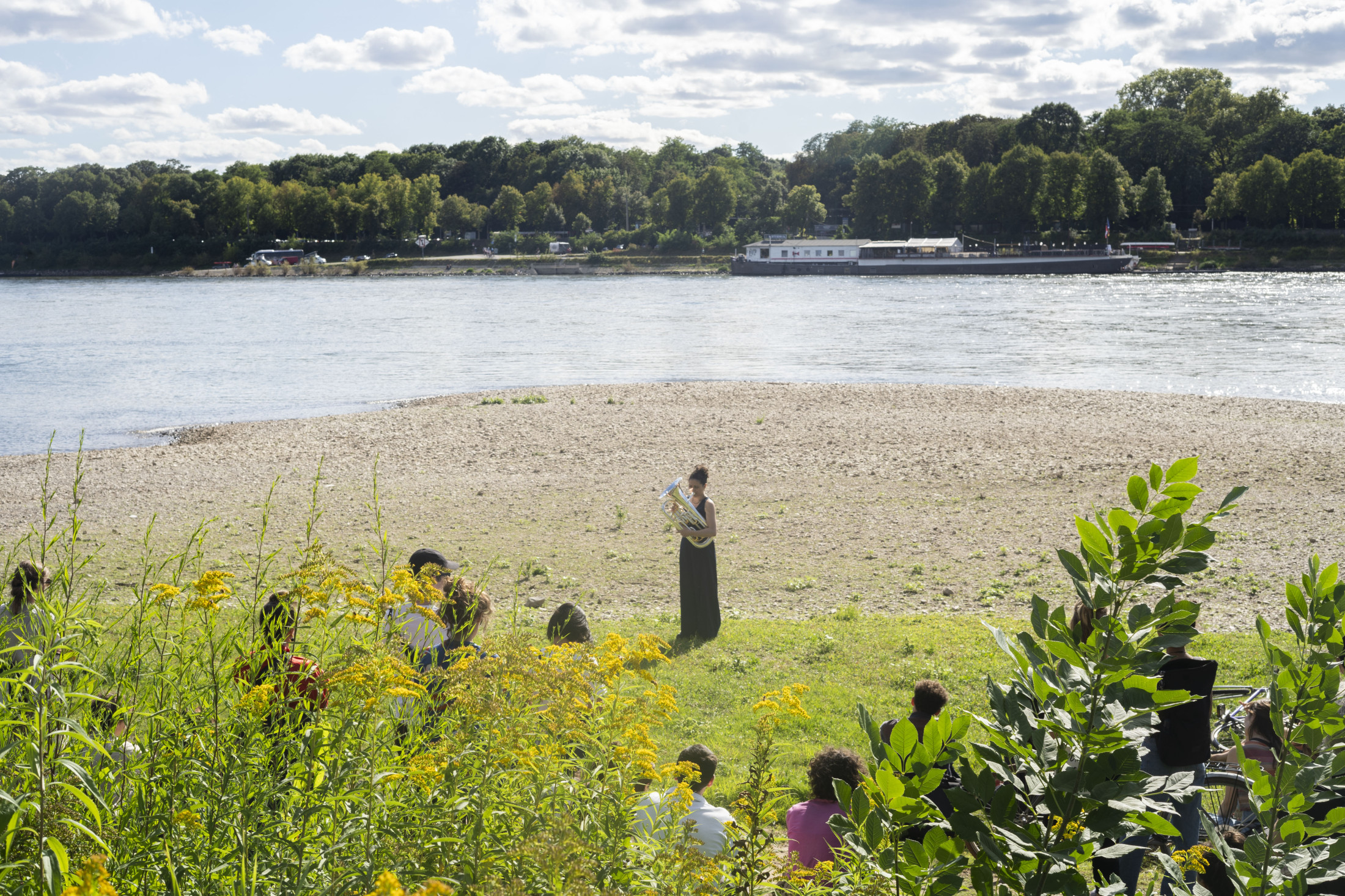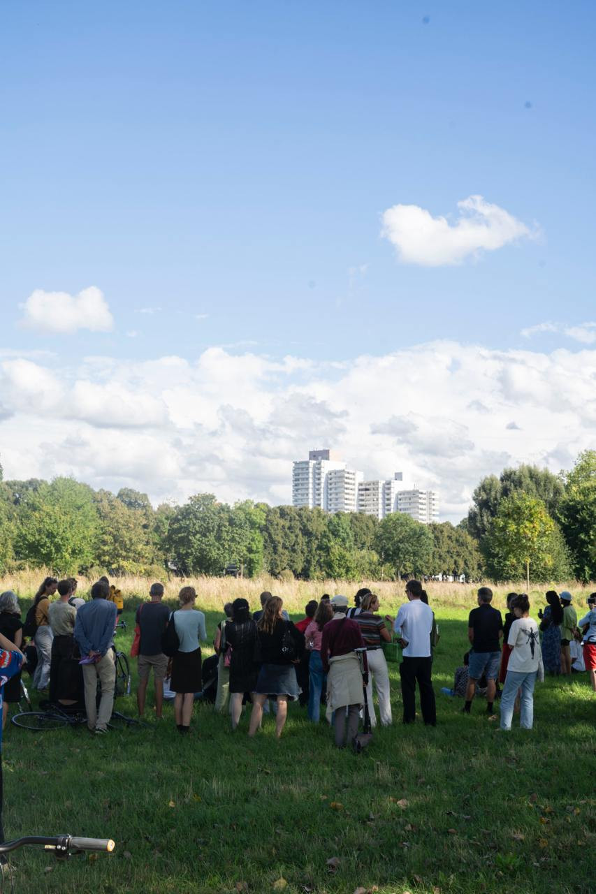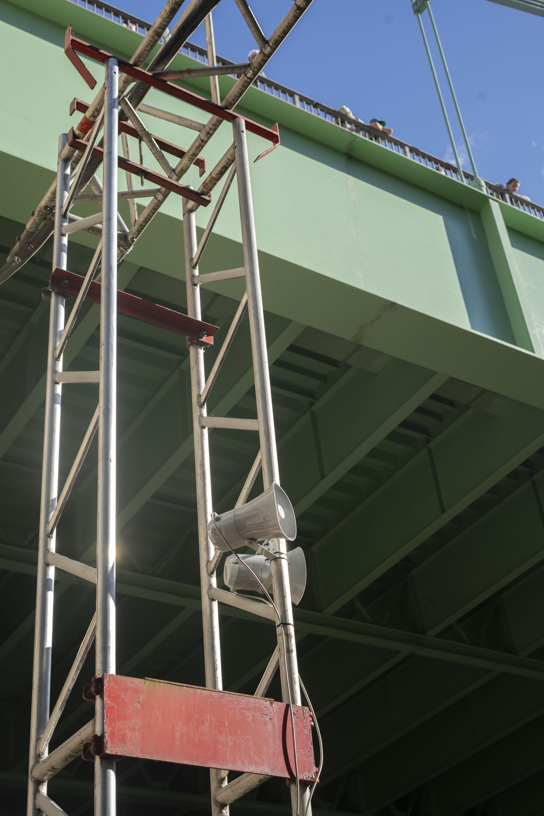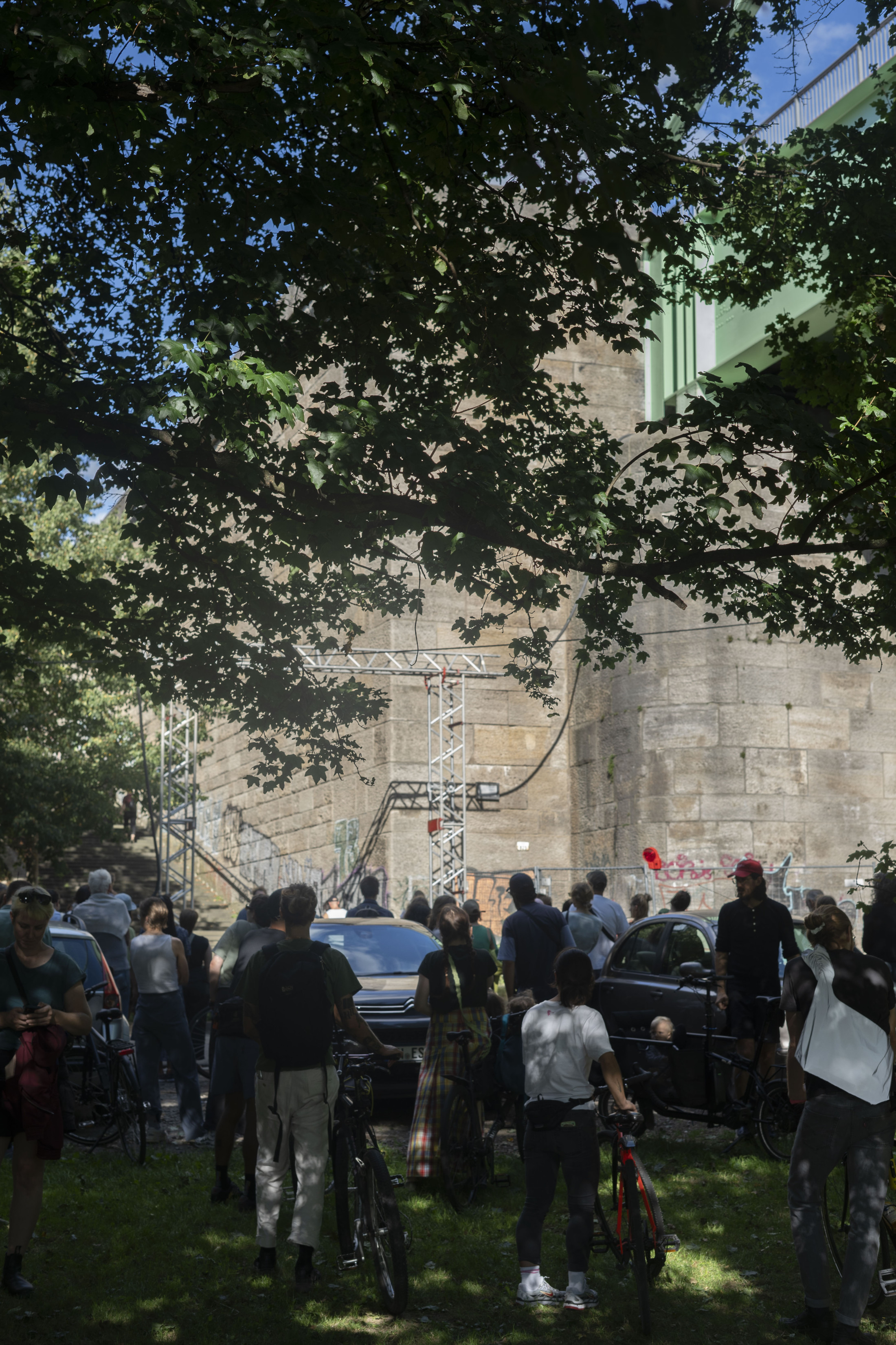 Within the framework of Über Brücken – Bridging, seven days of events featured local and international artistic positions. The invited artists engaged with the respective places, districts, and their inhabitants, as well as with the histories of the individual bridges. Each event day is devoted to one of the seven bridges. The events took take place over three years, starting in September 2022 with the Mülheimer Brücke. Over the following months, the venues moved from north to south across the Zoobrücke, the Hohenzollernbrücke, the Deutzer Brücke, the Severinsbrücke, the Südbrücke, and the Rodenkirchener Brücke, each including a guided walk across one of the bridges from bank to bank, from east to west and back again.