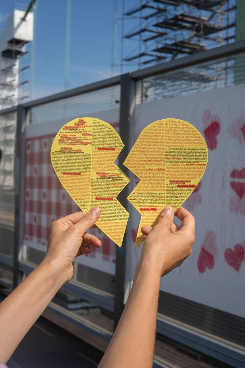 Cologne’s bridges are (historical) symbols of its urban transformation and provide space for discussion in relation to the expansion and preservation of their existence as structure-giving elements of the city. They connect districts that are undergoing different processes of social development, bridge the legendary Rhine, and connect the inner-city west with the east of Cologne at seven points. The bridges also embody the (geographical) junctions between the art scene on the left and right banks of the Rhine, which the project traced and illuminated through collaborations with existing Cologne initiatives and institutions in the different neighborhoods near the bridges.