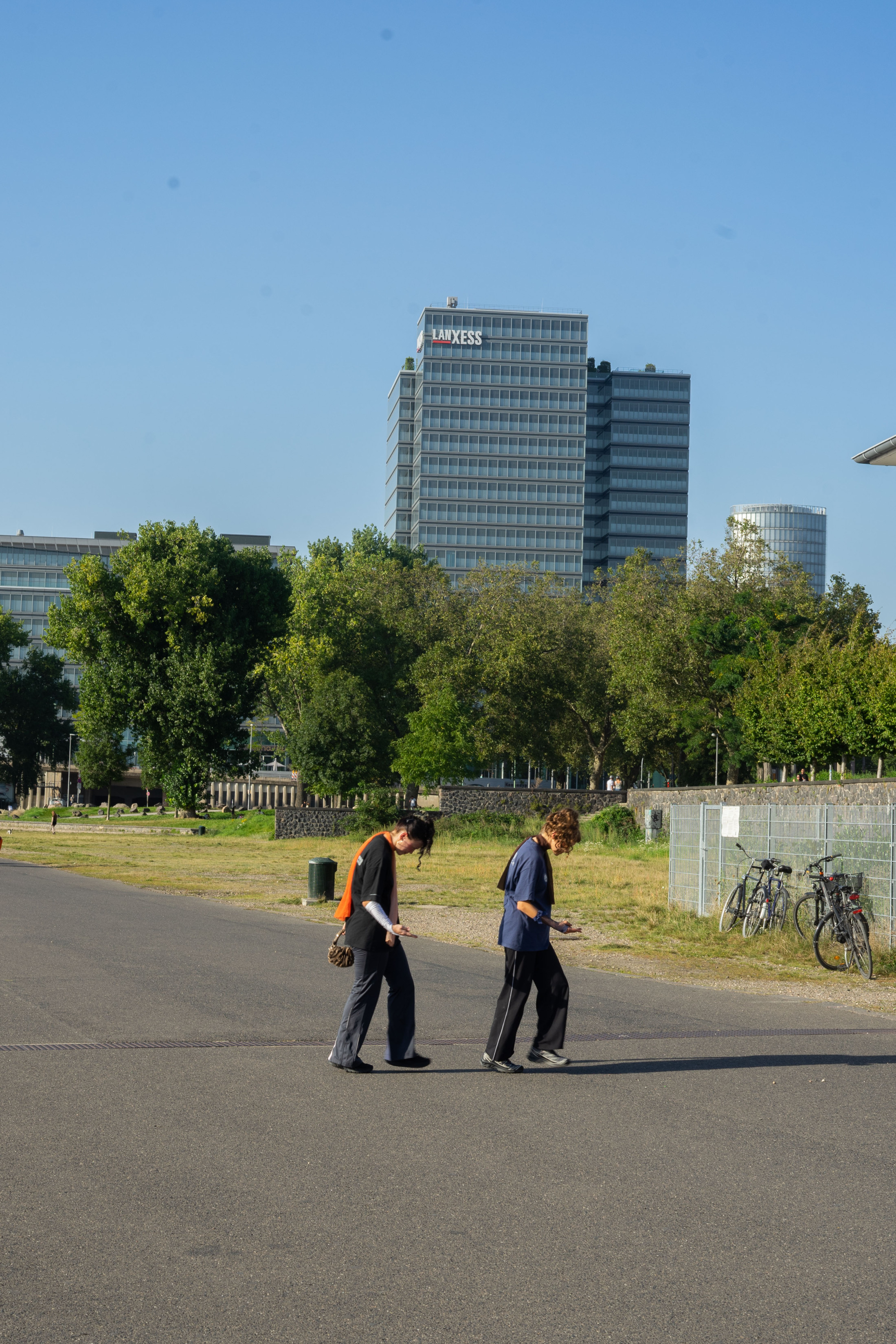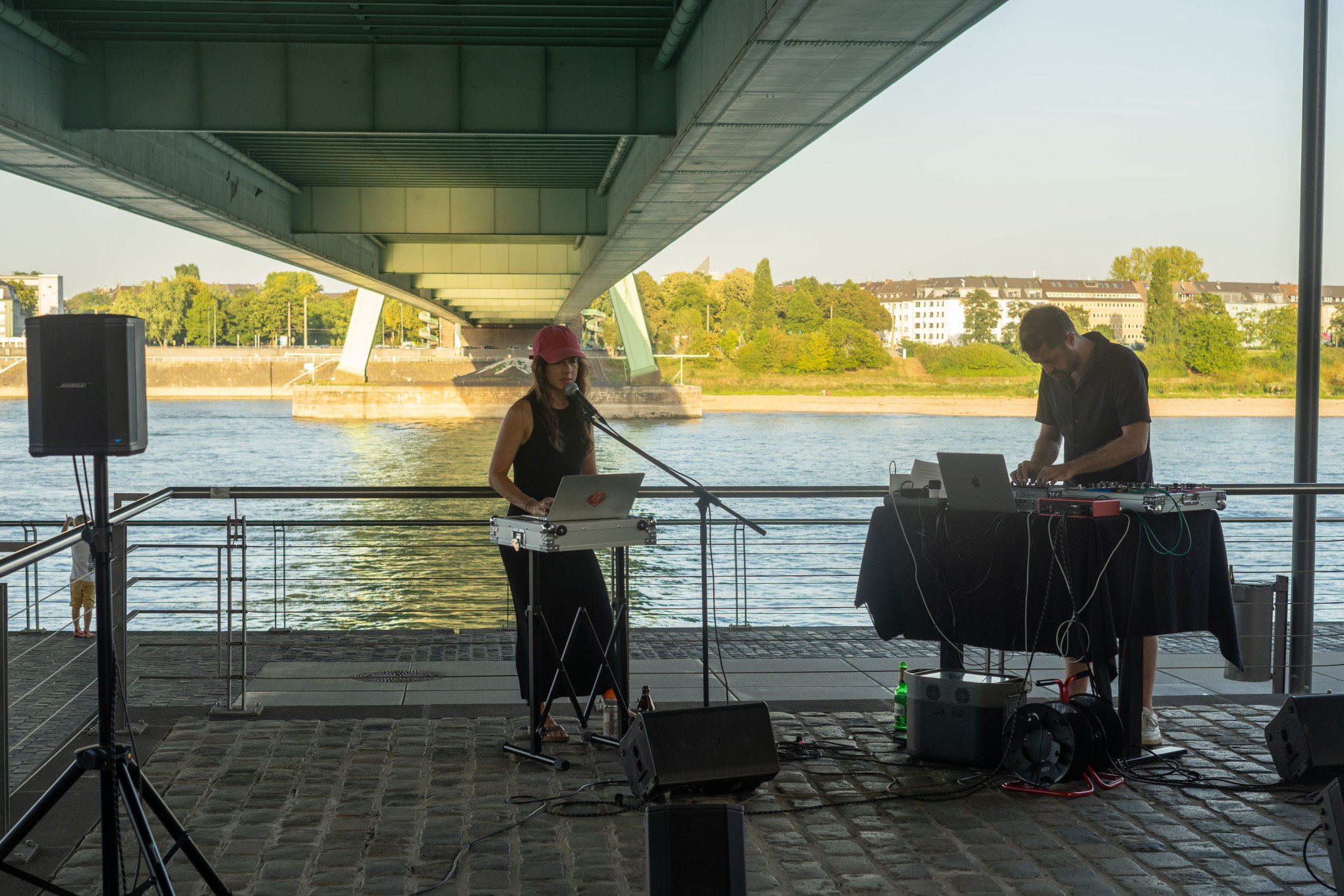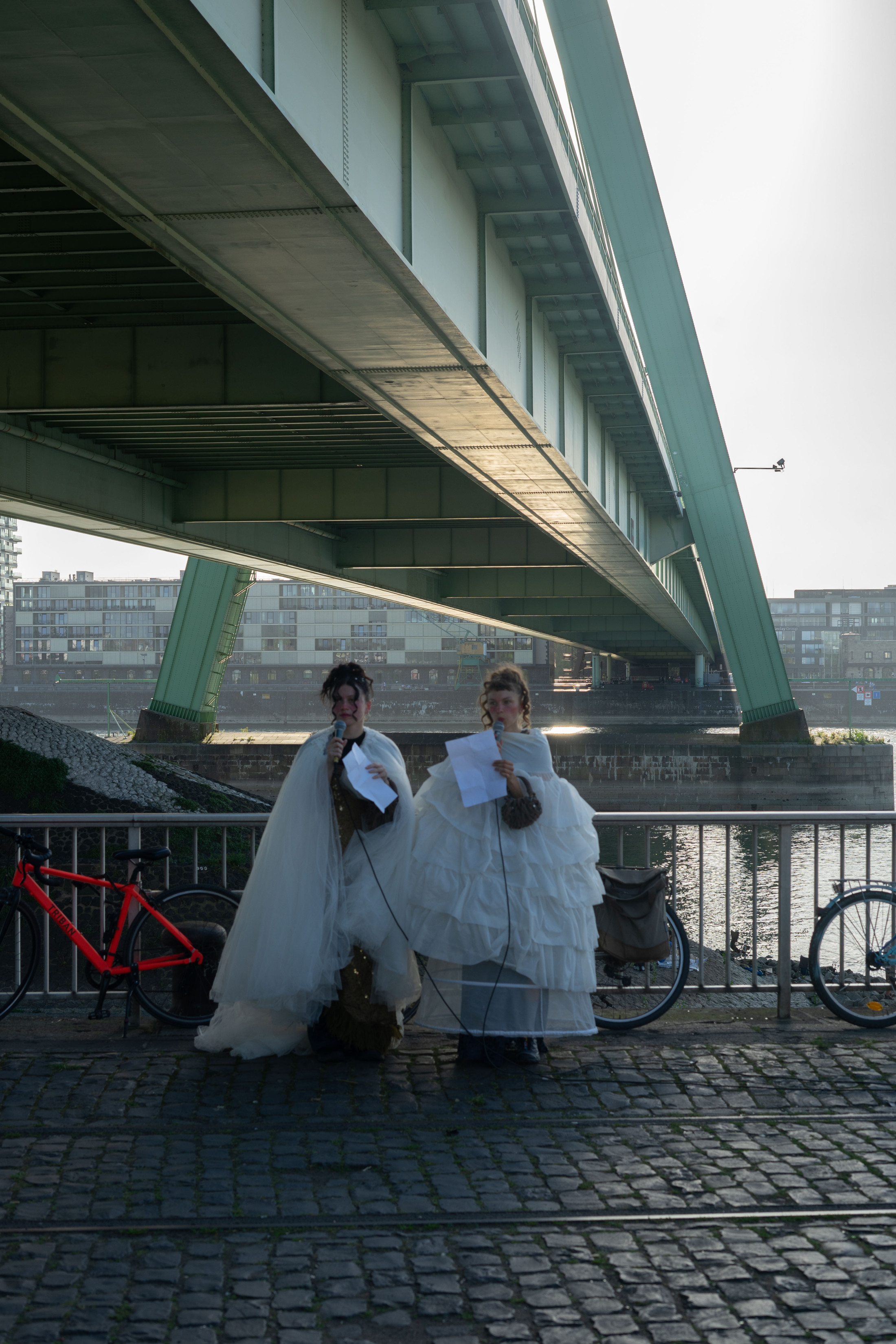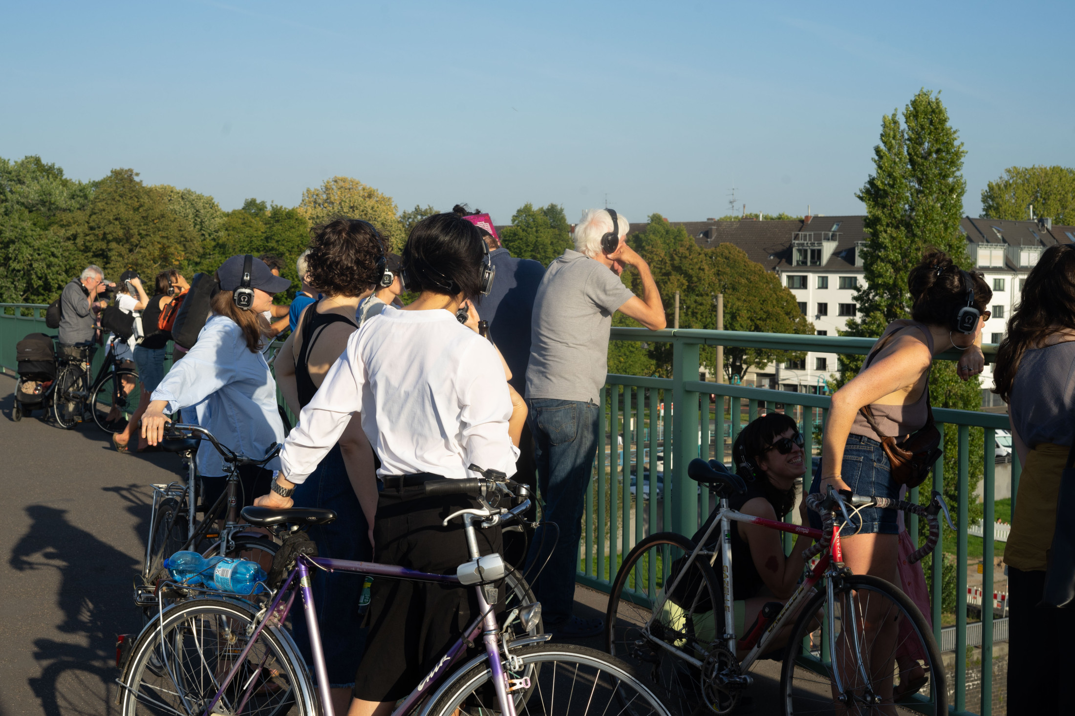 Within the framework of Über Brücken – Bridging, seven days of events featured local and international artistic positions. The invited artists engaged with the respective places, districts, and their inhabitants, as well as with the histories of the individual bridges. Each event day is devoted to one of the seven bridges. The events took take place over three years, starting in September 2022 with the Mülheimer Brücke. Over the following months, the venues moved from north to south across the Zoobrücke, the Hohenzollernbrücke, the Deutzer Brücke, the Severinsbrücke, the Südbrücke, and the Rodenkirchener Brücke, each including a guided walk across one of the bridges from bank to bank, from east to west and back again.