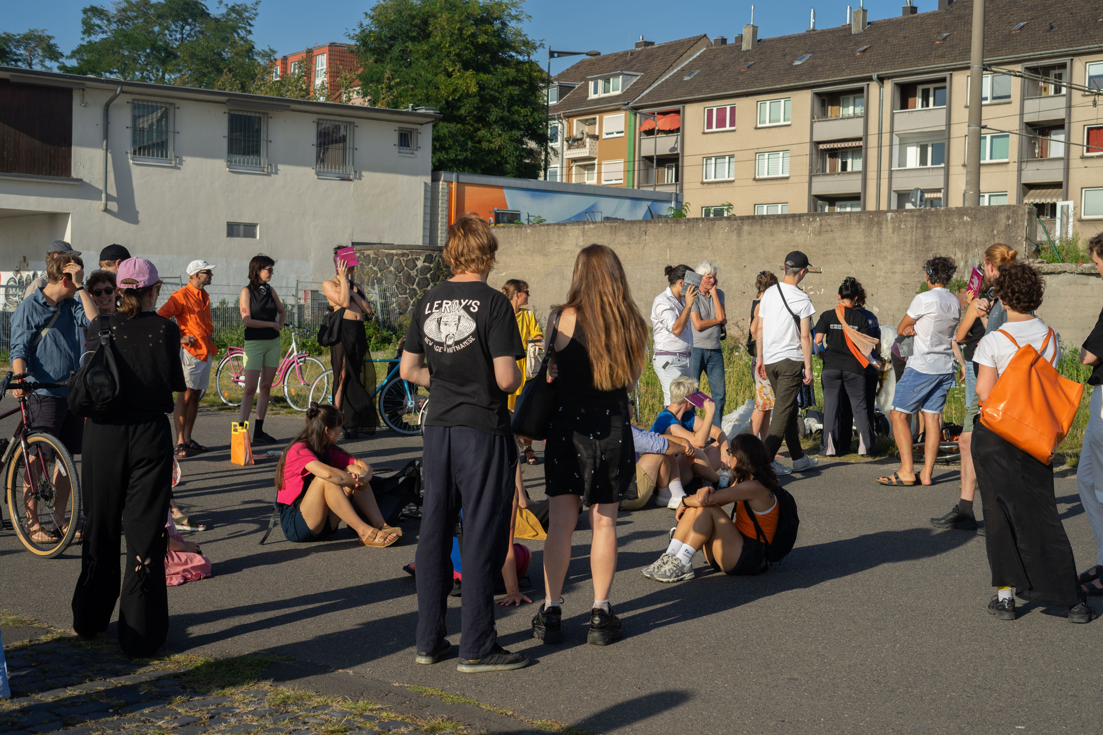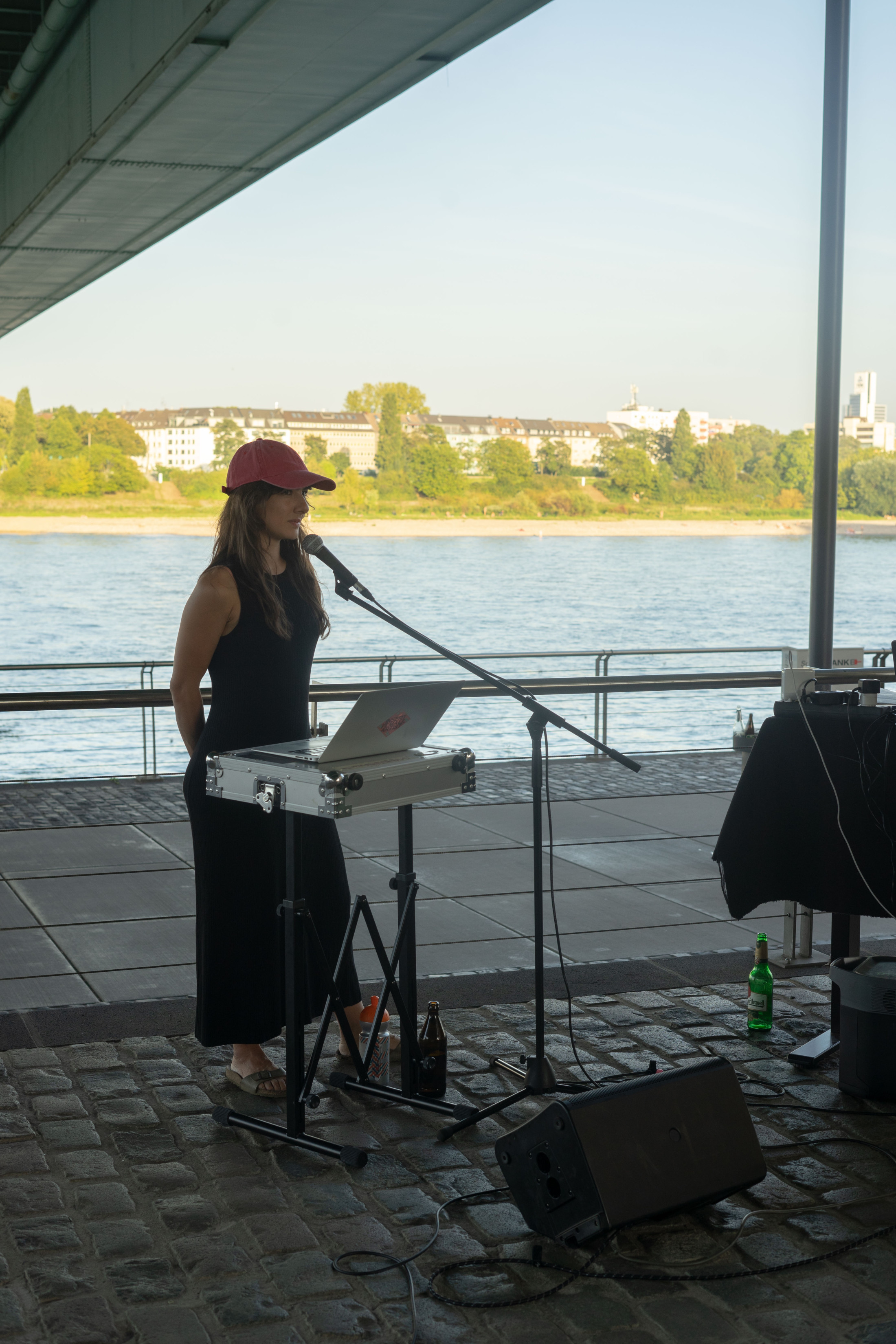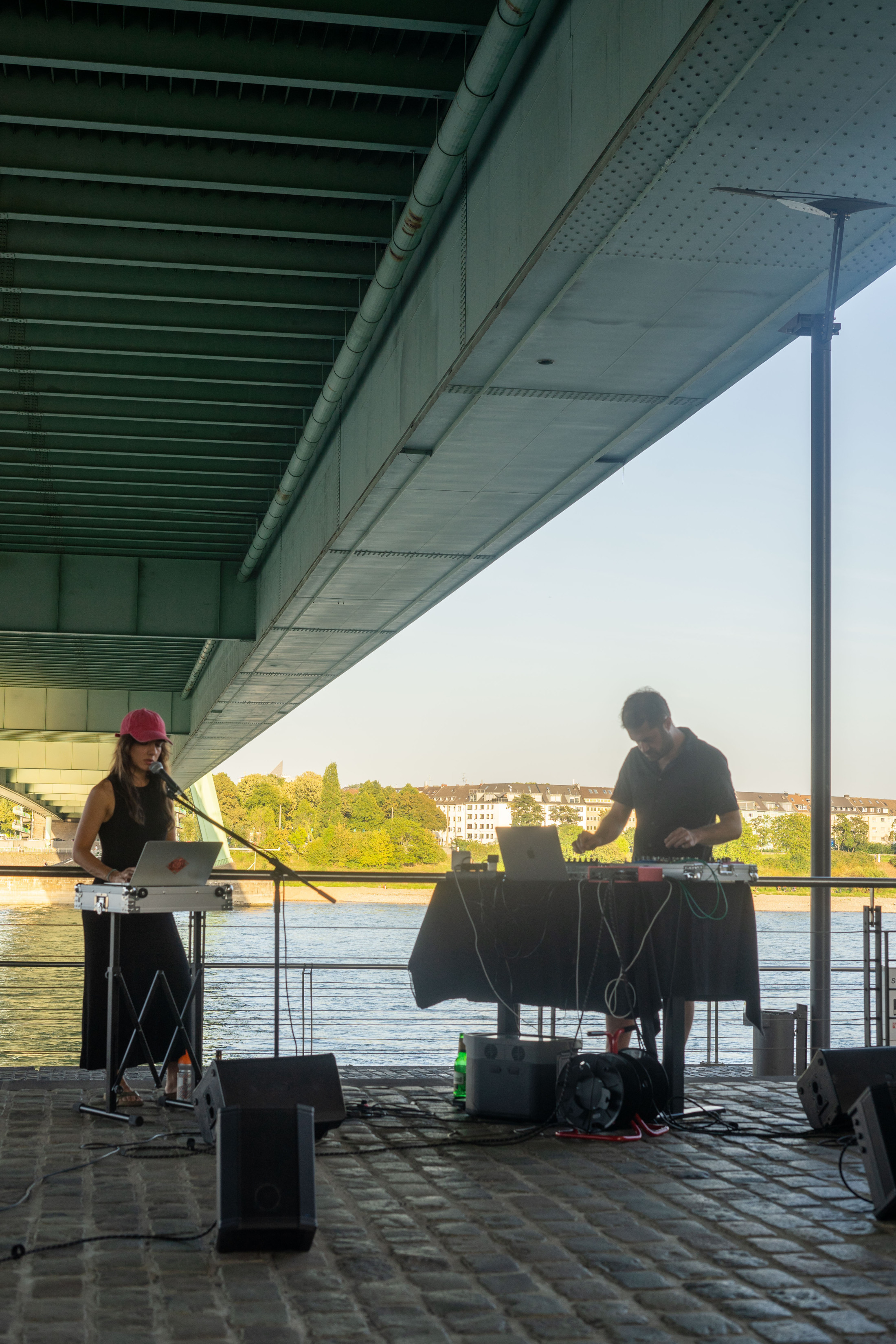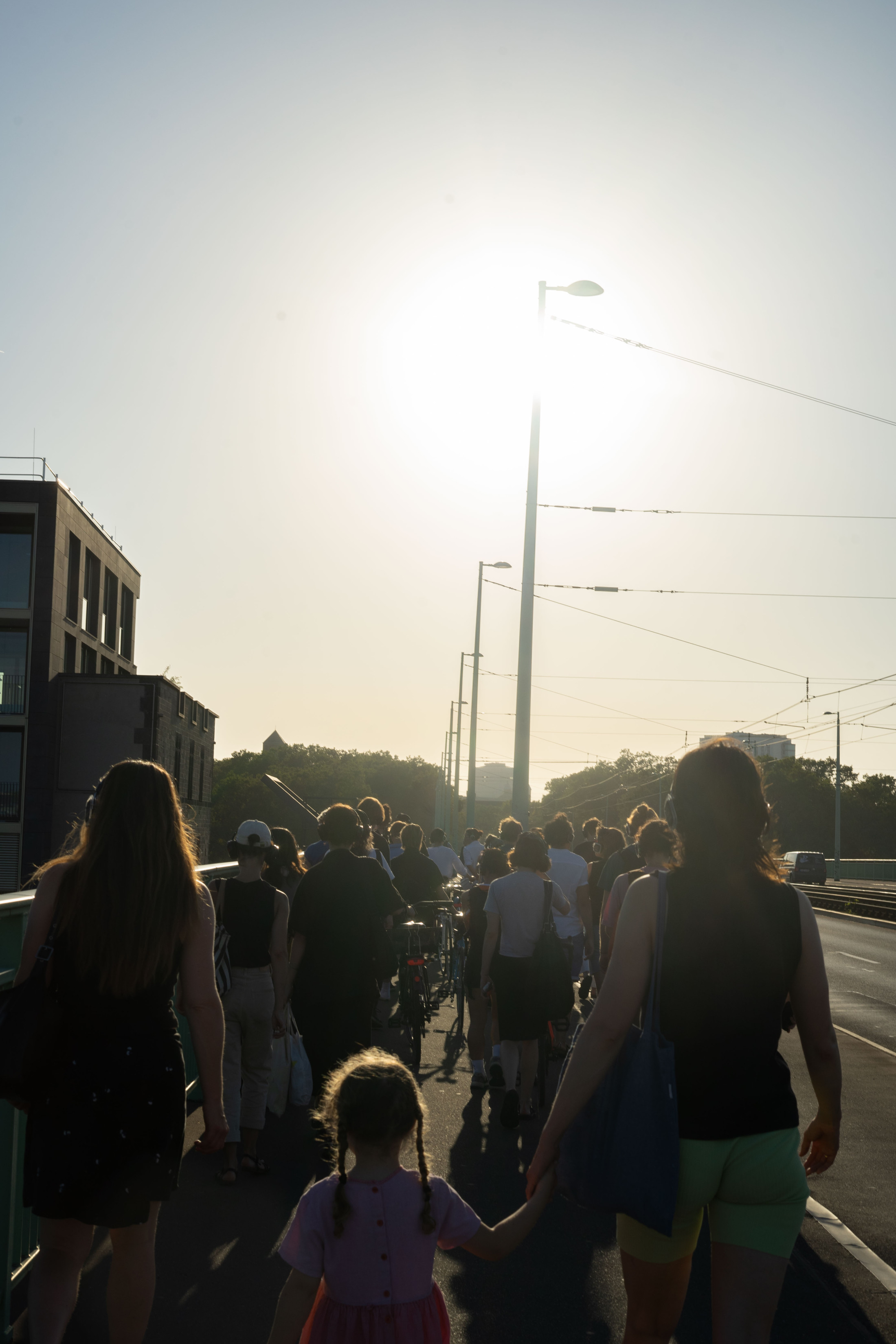 Within the framework of Über Brücken – Bridging, seven days of events featured local and international artistic positions. The invited artists engaged with the respective places, districts, and their inhabitants, as well as with the histories of the individual bridges. Each event day is devoted to one of the seven bridges. The events took take place over three years, starting in September 2022 with the Mülheimer Brücke. Over the following months, the venues moved from north to south across the Zoobrücke, the Hohenzollernbrücke, the Deutzer Brücke, the Severinsbrücke, the Südbrücke, and the Rodenkirchener Brücke, each including a guided walk across one of the bridges from bank to bank, from east to west and back again.