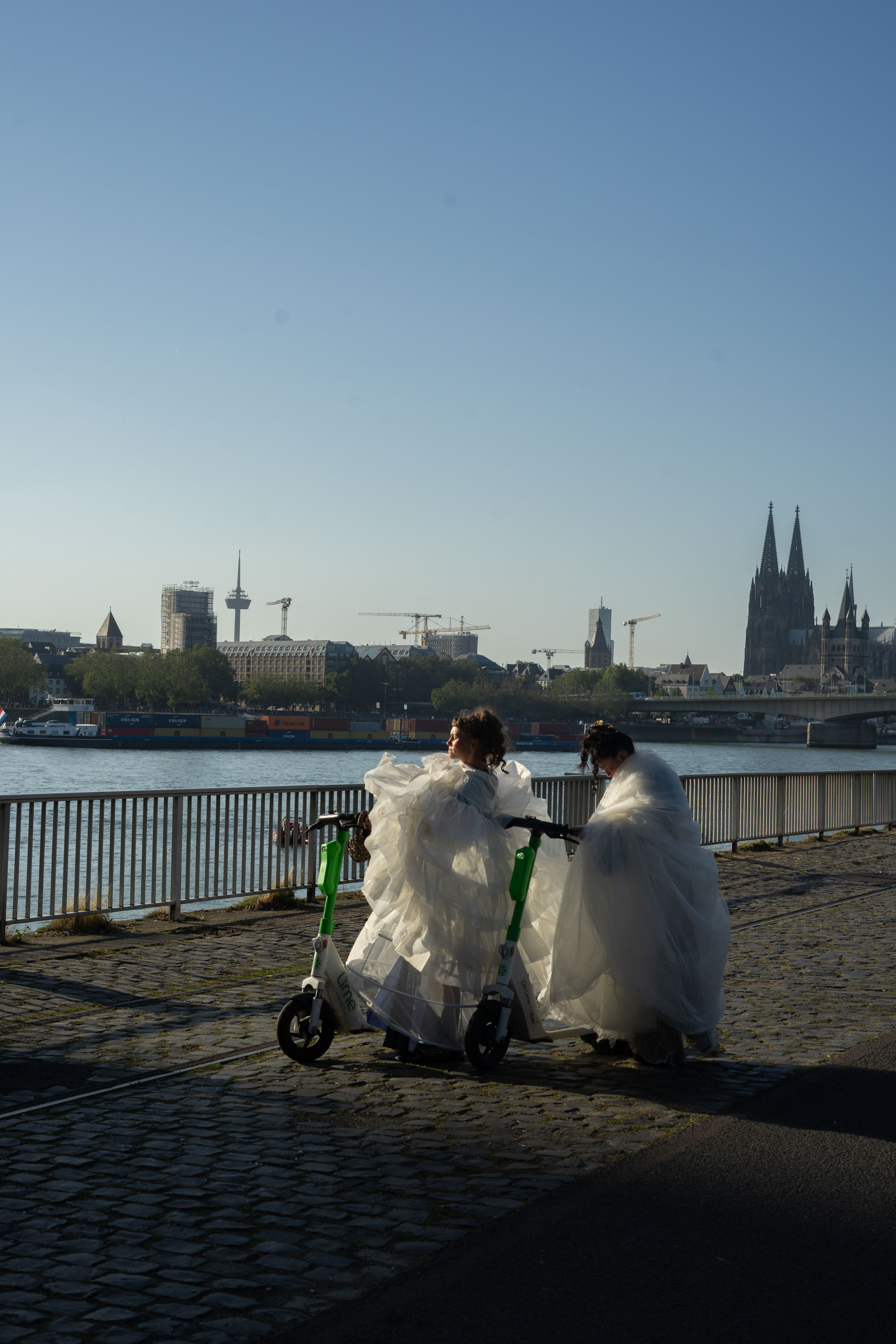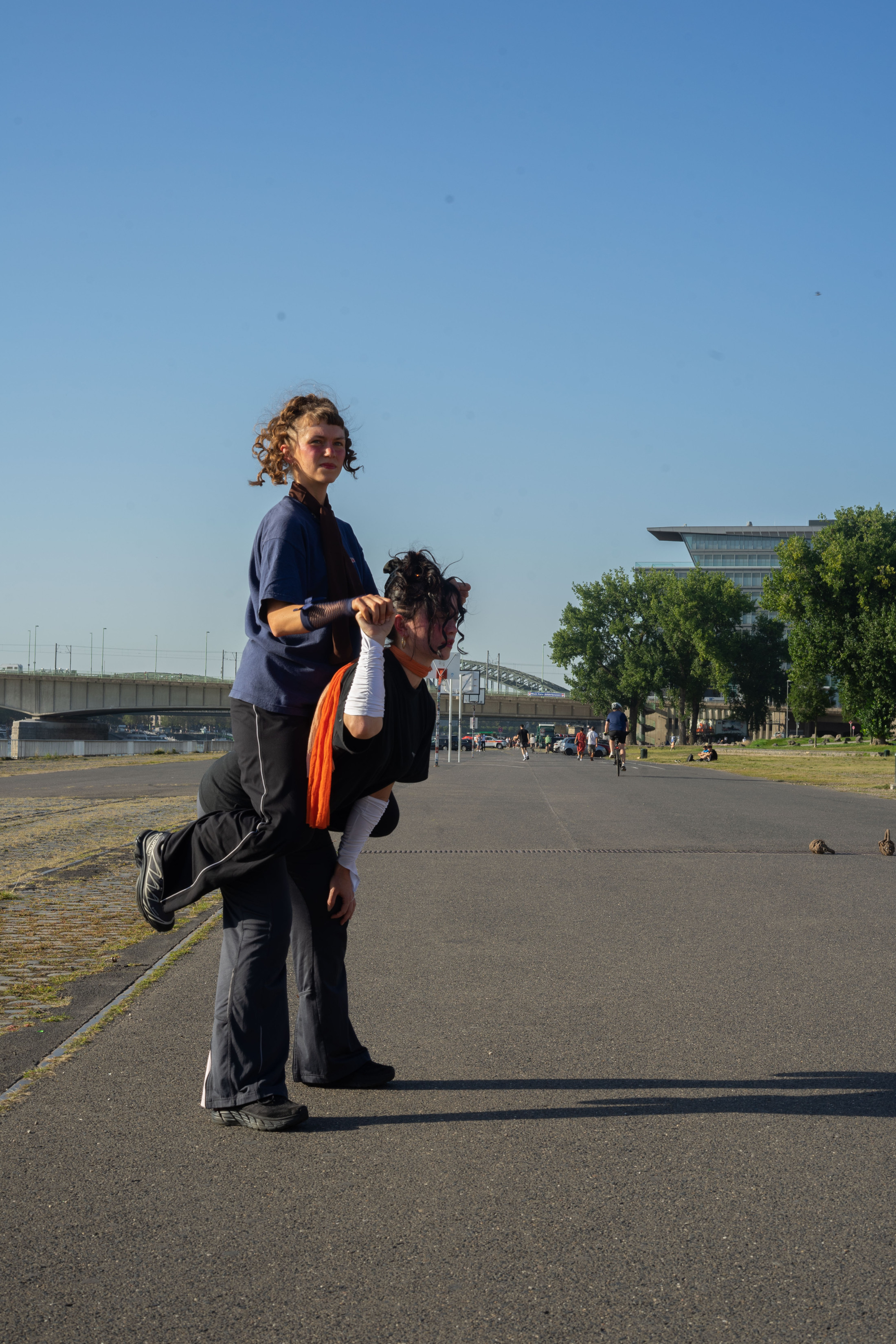 Über Brücken – Bridging was a performance and exhibition project in public space around and on the bridges of Cologne. Between September 2022 and September 2024, the program took place in various public places in Cologne that were connected to the bridges and formed the setting for the artistic works.